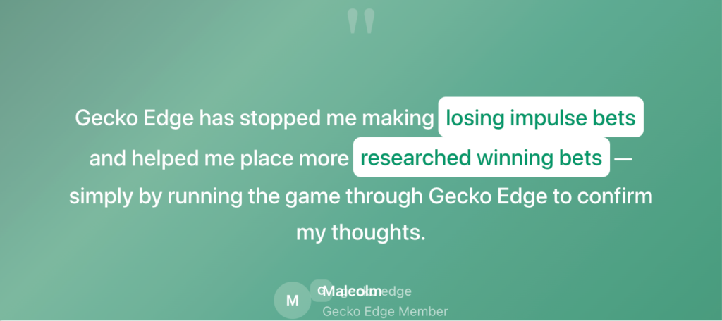 “Gecko Edge has stopped me making losing impulse bets and helped me place more researched winning bets — simply by running the game through Gecko Edge to confirm my thoughts.”