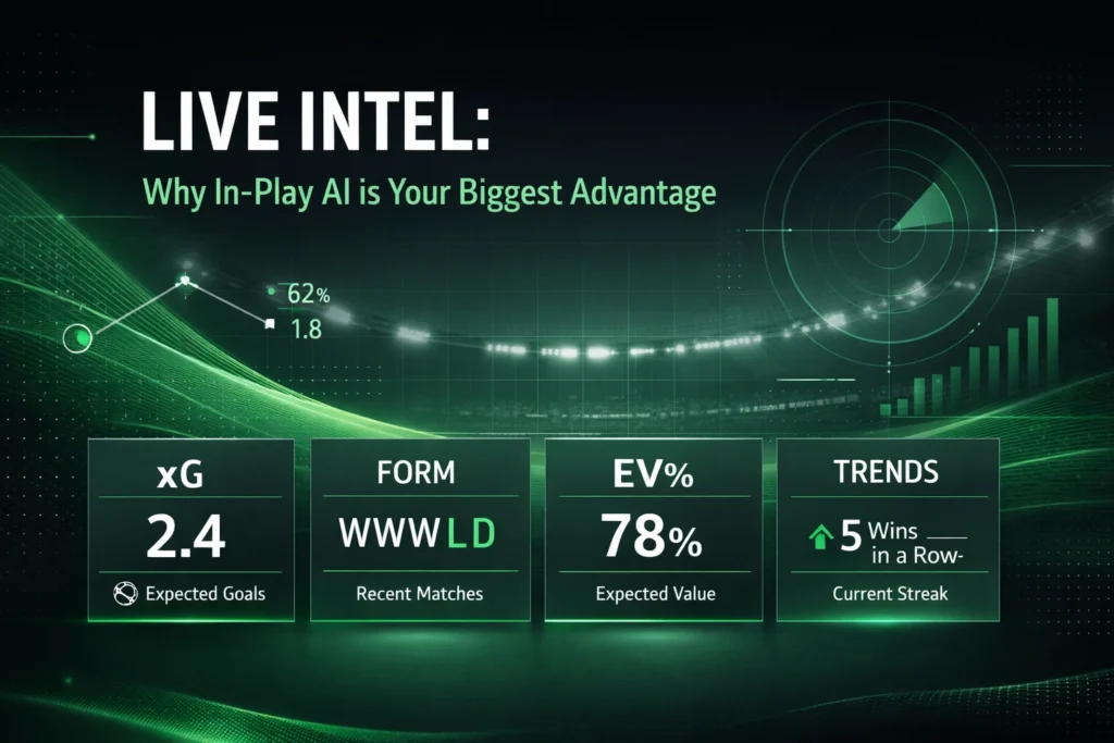 In-Play AI; the game starts long before the whistle blows, but for most bettors, the real struggle begins the moment it does. Pre-match analysis is a cornerstone of any strategy, yet it has a fundamental flaw: it is static. Once the first ball is kicked, every spreadsheet, every historical trend, and every pre-game tip starts to decay. The reality on the pitch is fluid, and the market moves with a ruthless velocity that leaves manual analysis in the dust.