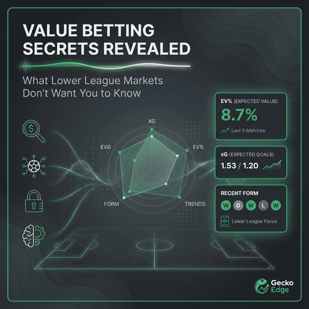 Gecko Edge approaches lower league value betting systematically. The AI processes thousands of data points across team performance, player metrics, situational factors, and market movements to identify genuine betting opportunities.